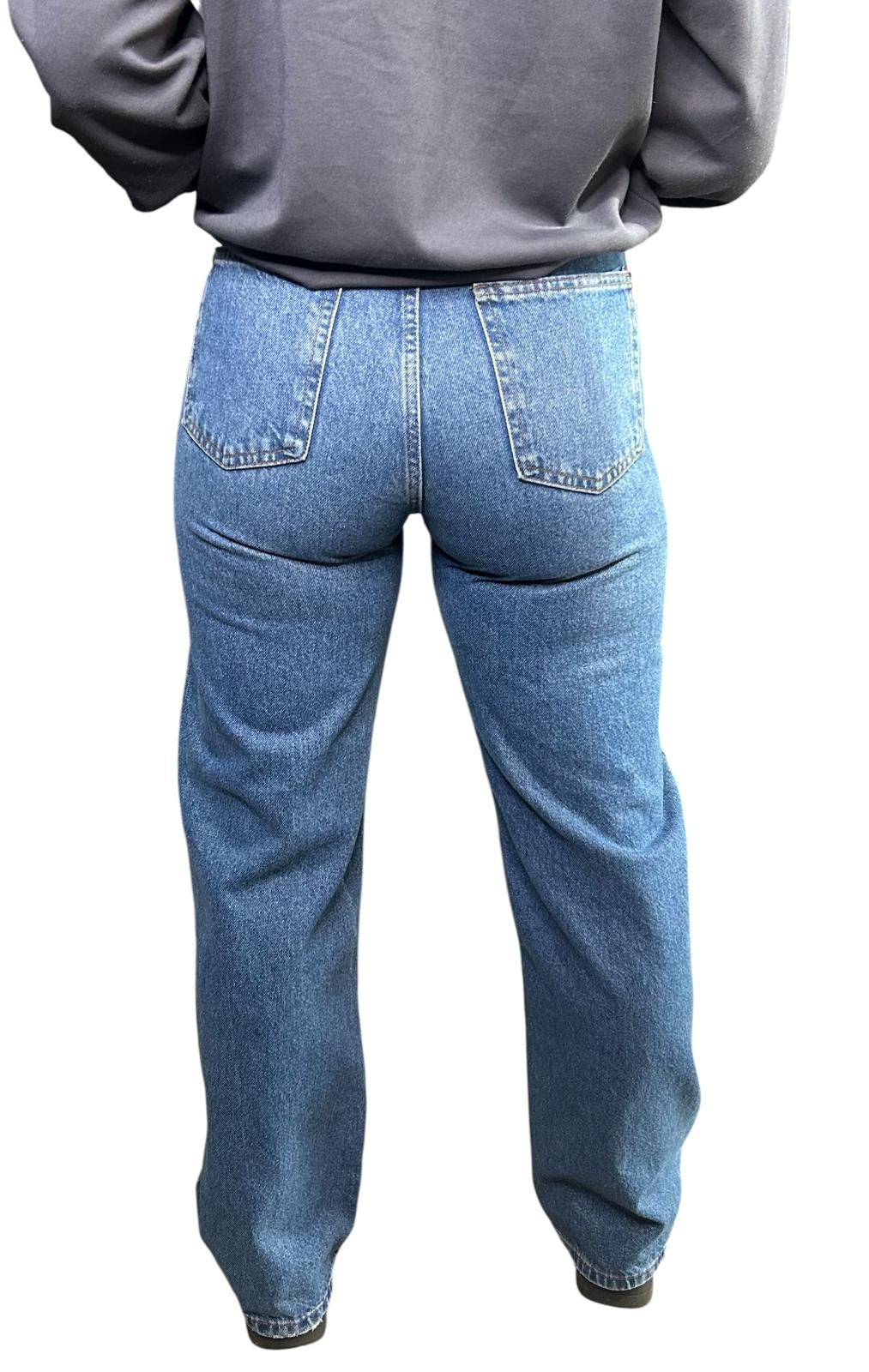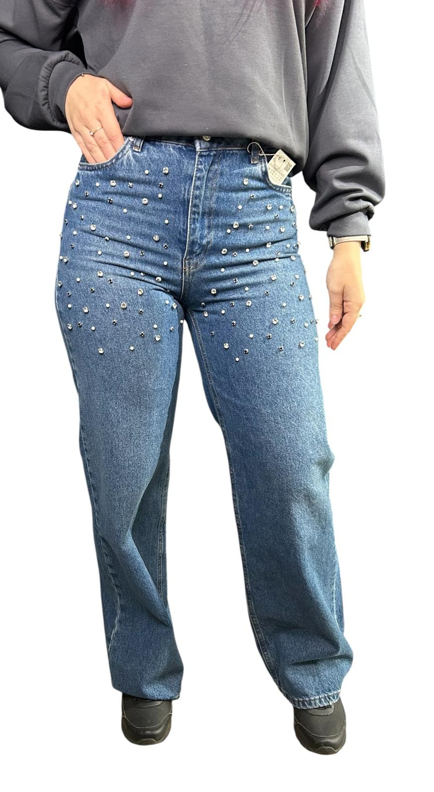 Blugi Dama, Croiala Mom-Fit, Decorati Cu Diamante, Albastru