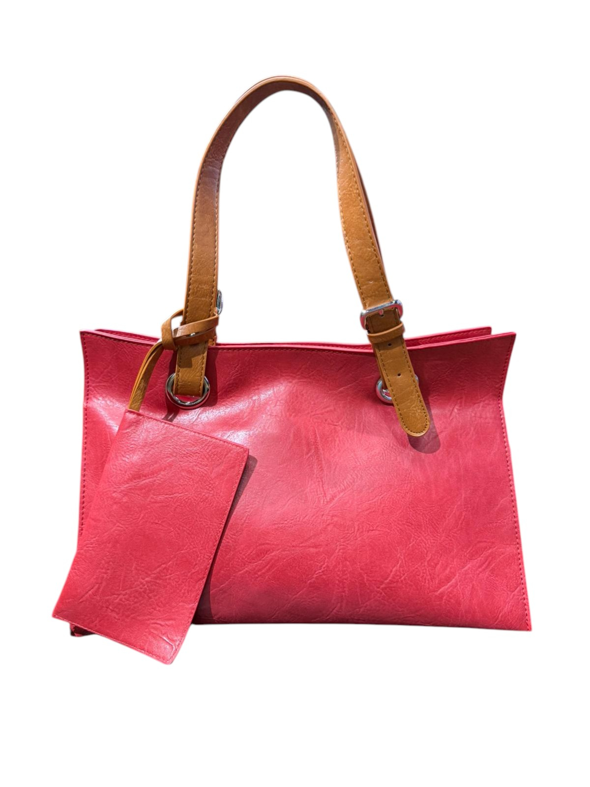 Adaugă o pată de culoare garderobei tale cu această geantă shopper versatilă, concepută pentru a îmbina stilul practic cu tendințele actuale. Culoarea roșie vibrantă, completată de o textură discretă „vintage-effect”, oferă un aer sofisticat oricărei ținute, de la jeans și cămașă până la o rochie office.