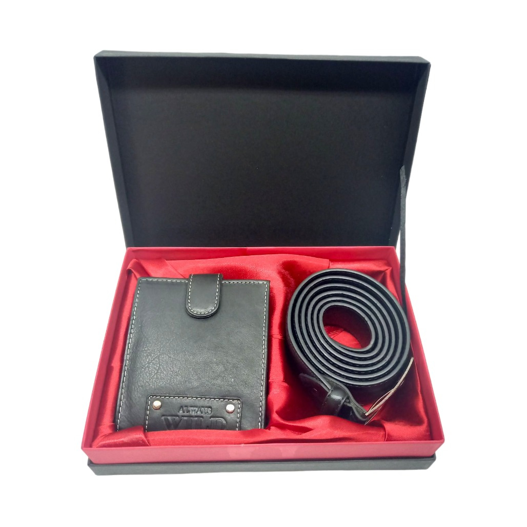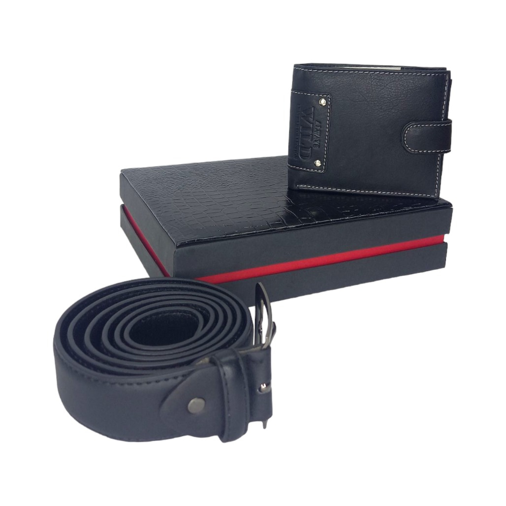 Este compus dintr-o curea si un portofel din piele naturala neagra.
